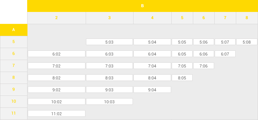 Tehát például ha normál számokból 6 db-ot szeretnél játszani (A-val jelölve), akkor minimum 2, maximum 7 kombinációs számot választhatsz Euro-számnak (B-vel jelölve).